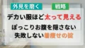 肩のラインはだらしなく落ち、胸元には変なシワが寄り、本来隠せるはずの「ぽっこりお腹」が強調されます。